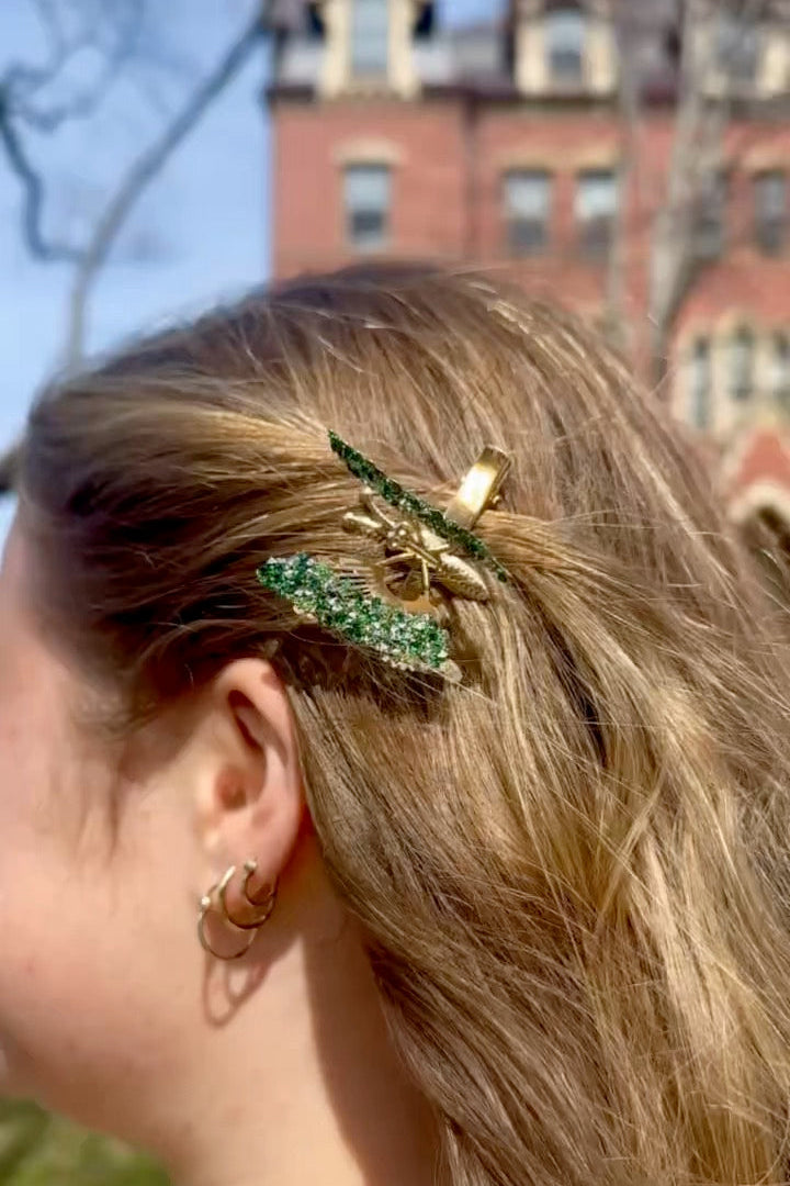 Add a touch of whimsy to your look with these enchanting Bejeweled Fluttering Butterfly Clips! Crafted from sleek metal and adorned with sparkling gems, these delicate clips come in a set of 2. They flutter gracefully with every moment, creating a mesmerizing effect. Perfect for hair, clothing, or accessories, it's an eye-catching piece that brings elegance and charm to any outfit.
