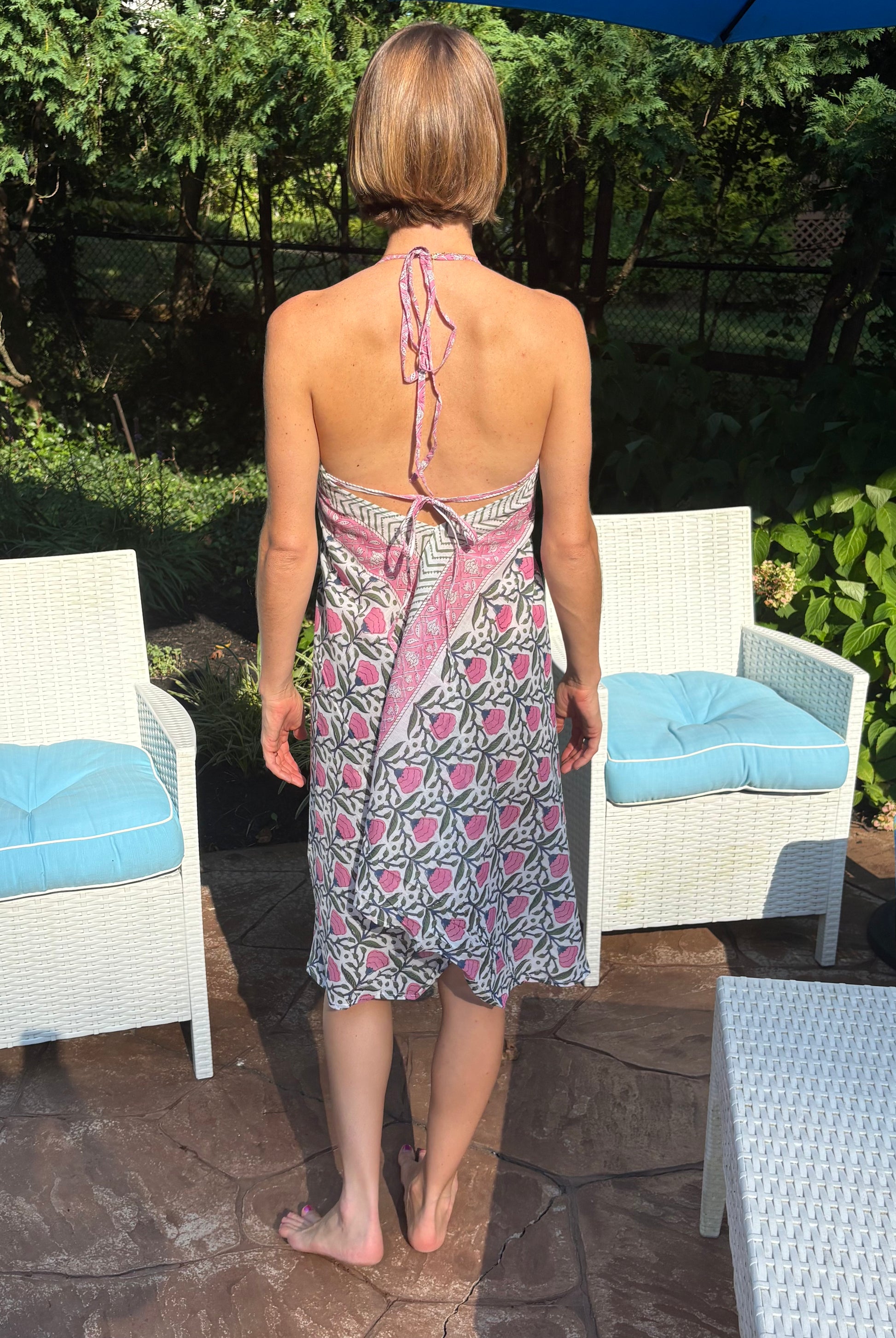 Block Print Beach Cover - Pastel Pink Floral