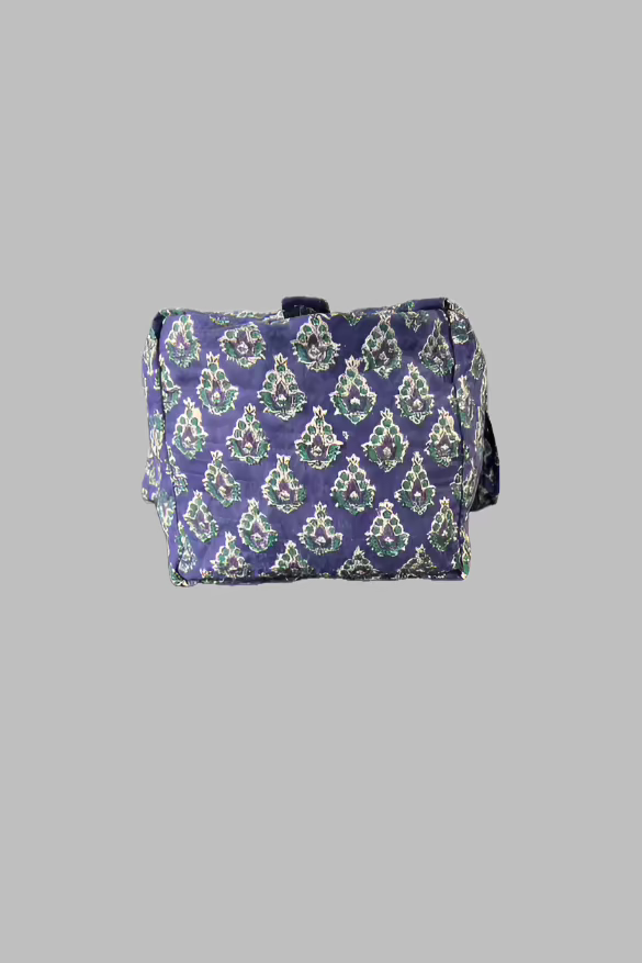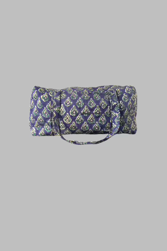 Our hand block print duffle bag is the perfect size to hold any and all of your necessities! Whether staying at a friend’s house for the night, packing for a weekend getaway, utilizing it as an airplane carry-on or another occasion you see fit, this beautifully block printed duffle will have you traveling in style! The zipper closure ensures all of your belongings arrive safely to their intended destination.