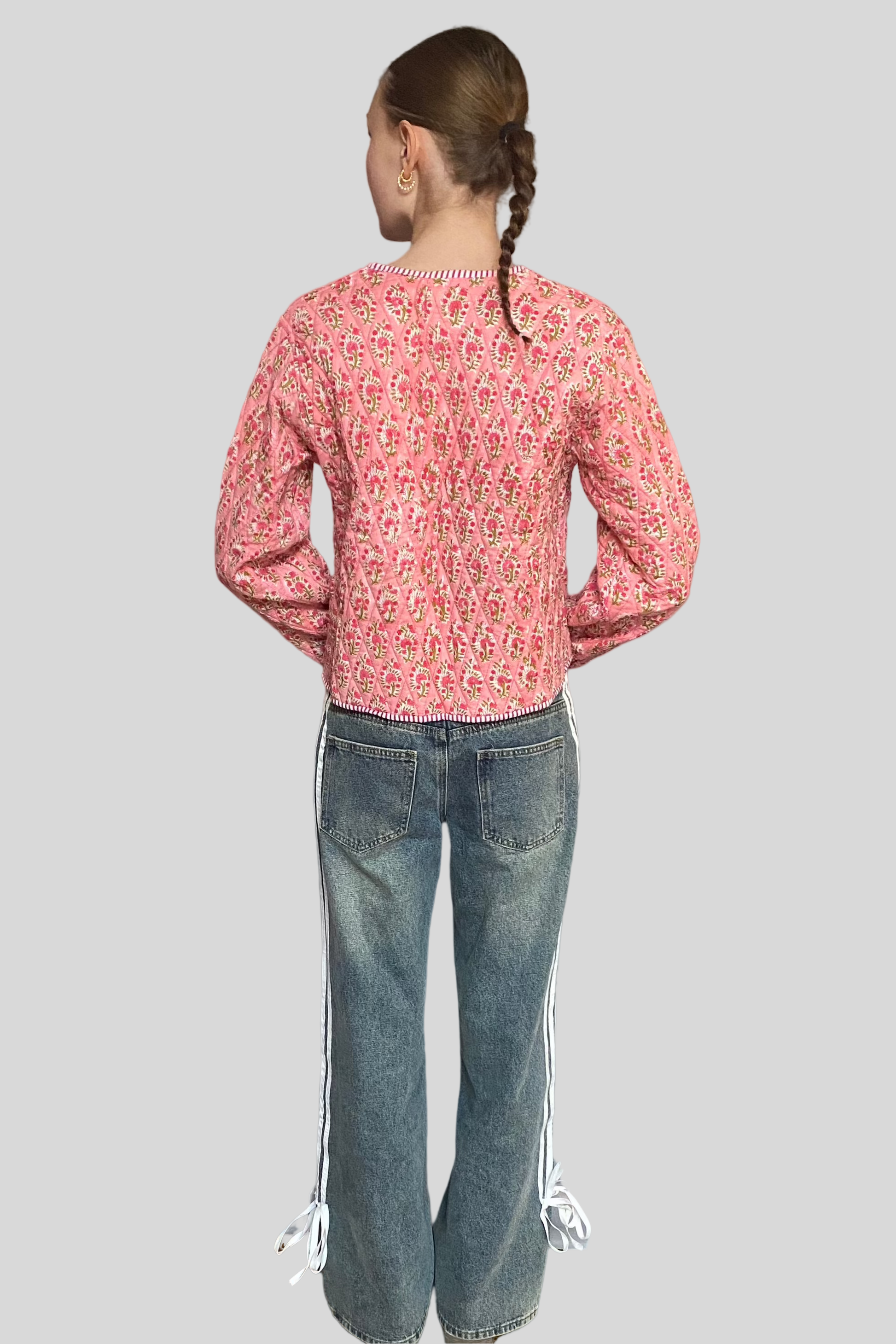 Block Print Quilted Cropped Reversible Jacket - Pink