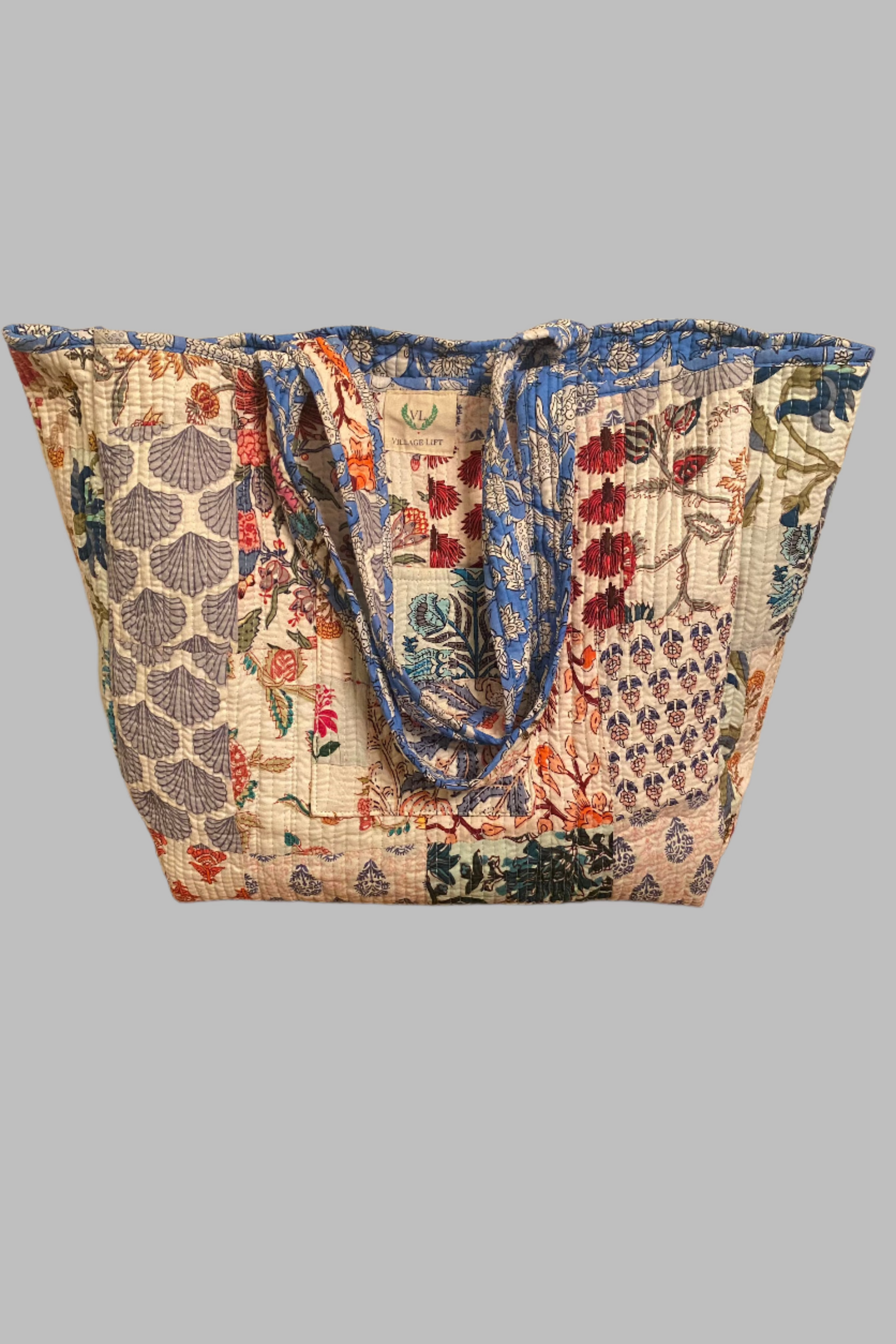 Block Print Reversible Tote Bag - Blue Floral & Patchwork