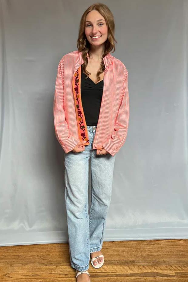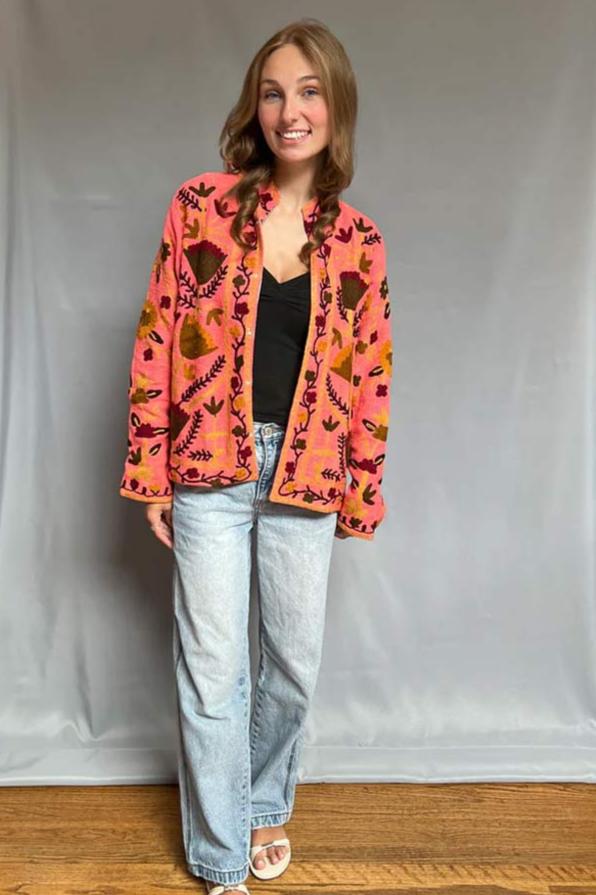 Our embroidered reversible jackets provide comfort and style all in one. With intricate embroidery on one side and a more minimalistic design on the other, you can effortlessly switch up your look, making it optimal for various occasions. The one-size-fits-all design ensures a comfortable fit for a wide range of body types, while the reversible feature doubles your wardrobe options without taking up extra space.