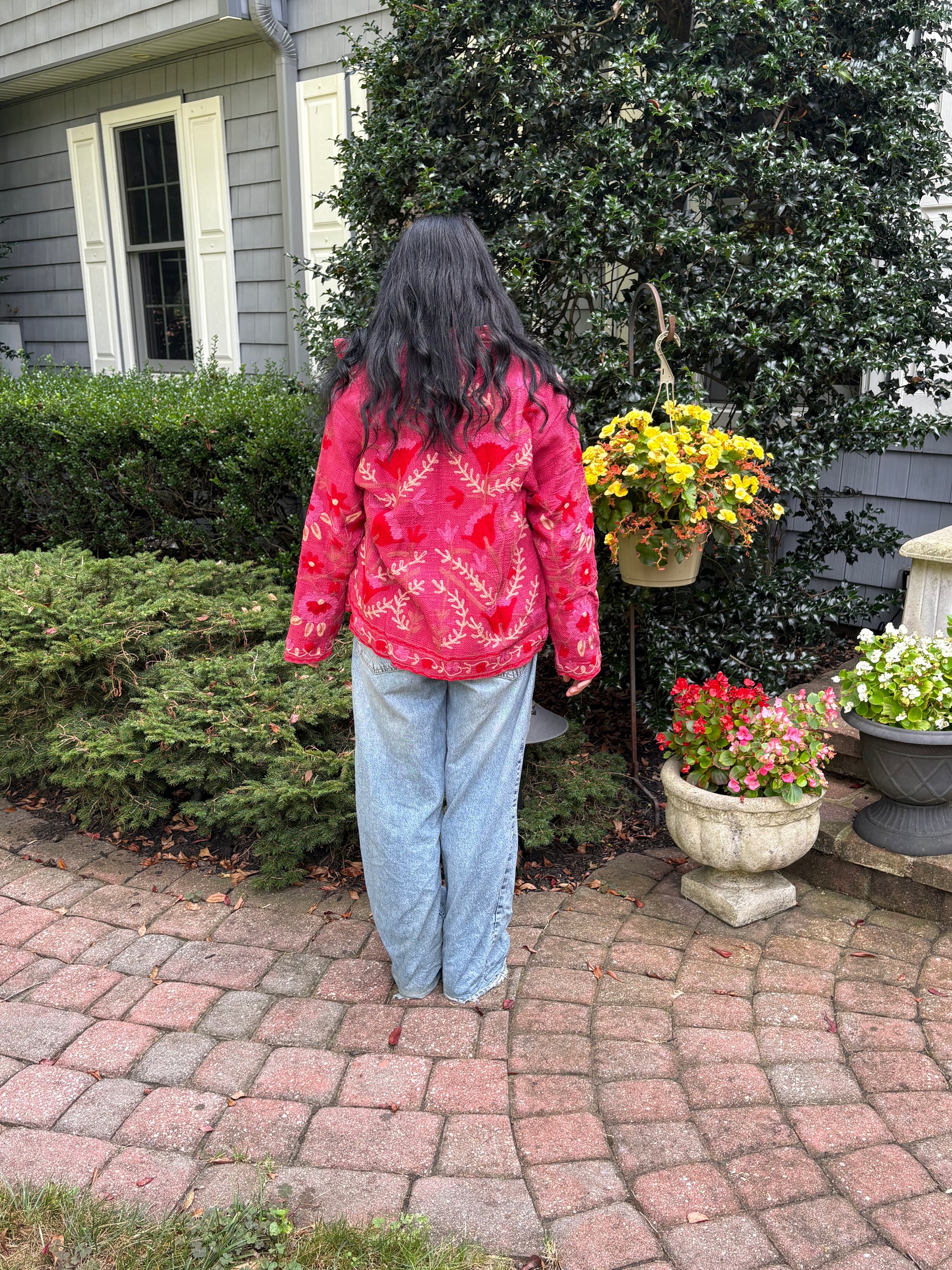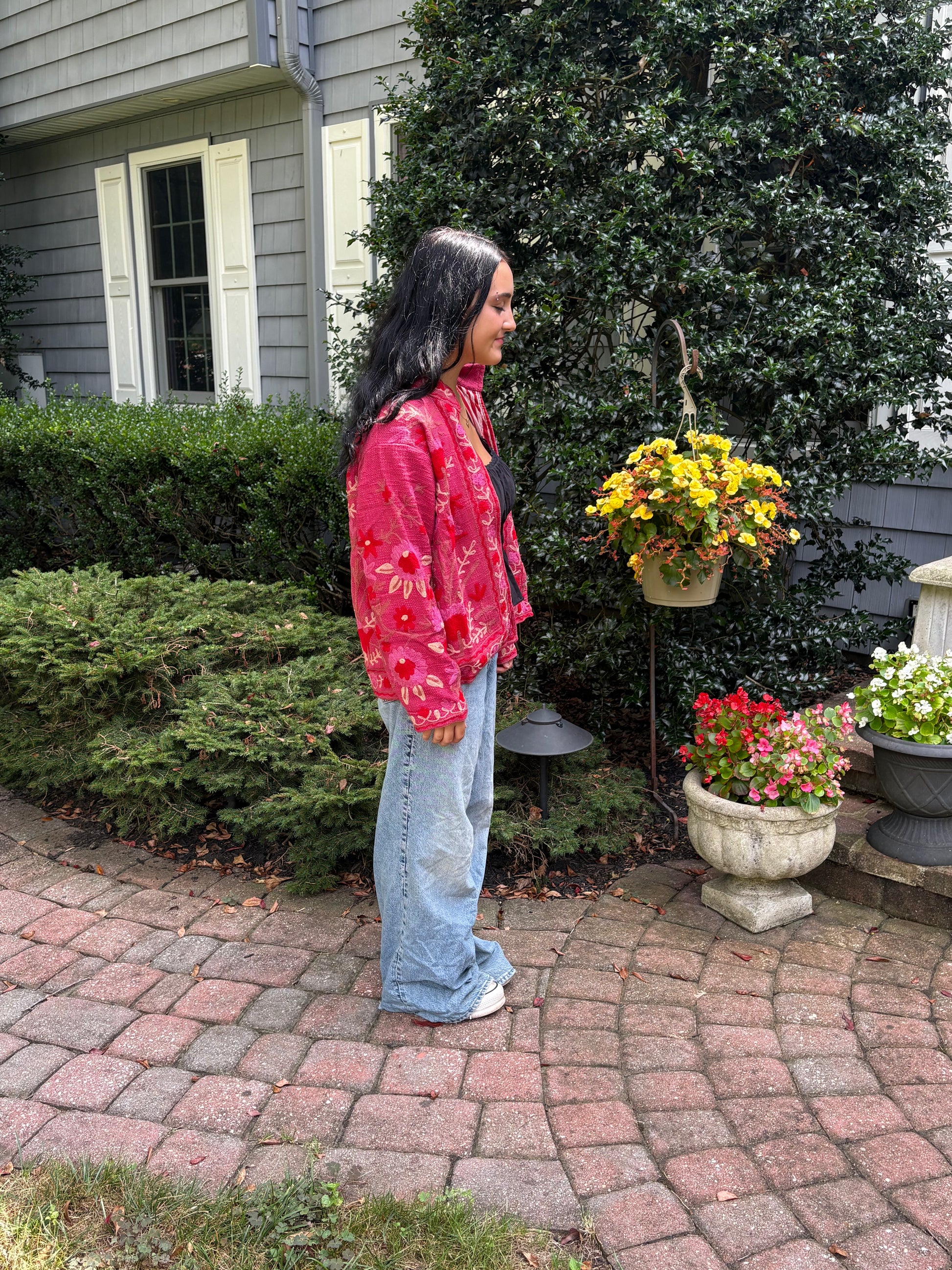 Our embroidered reversible jackets provide comfort and style all in one. With intricate embroidery on one side and a more minimalistic design on the other, you can effortlessly switch up your look, making it optimal for various occasions. The one-size-fits-all design ensures a comfortable fit for a wide range of body types, while the reversible feature doubles your wardrobe options without taking up extra space.