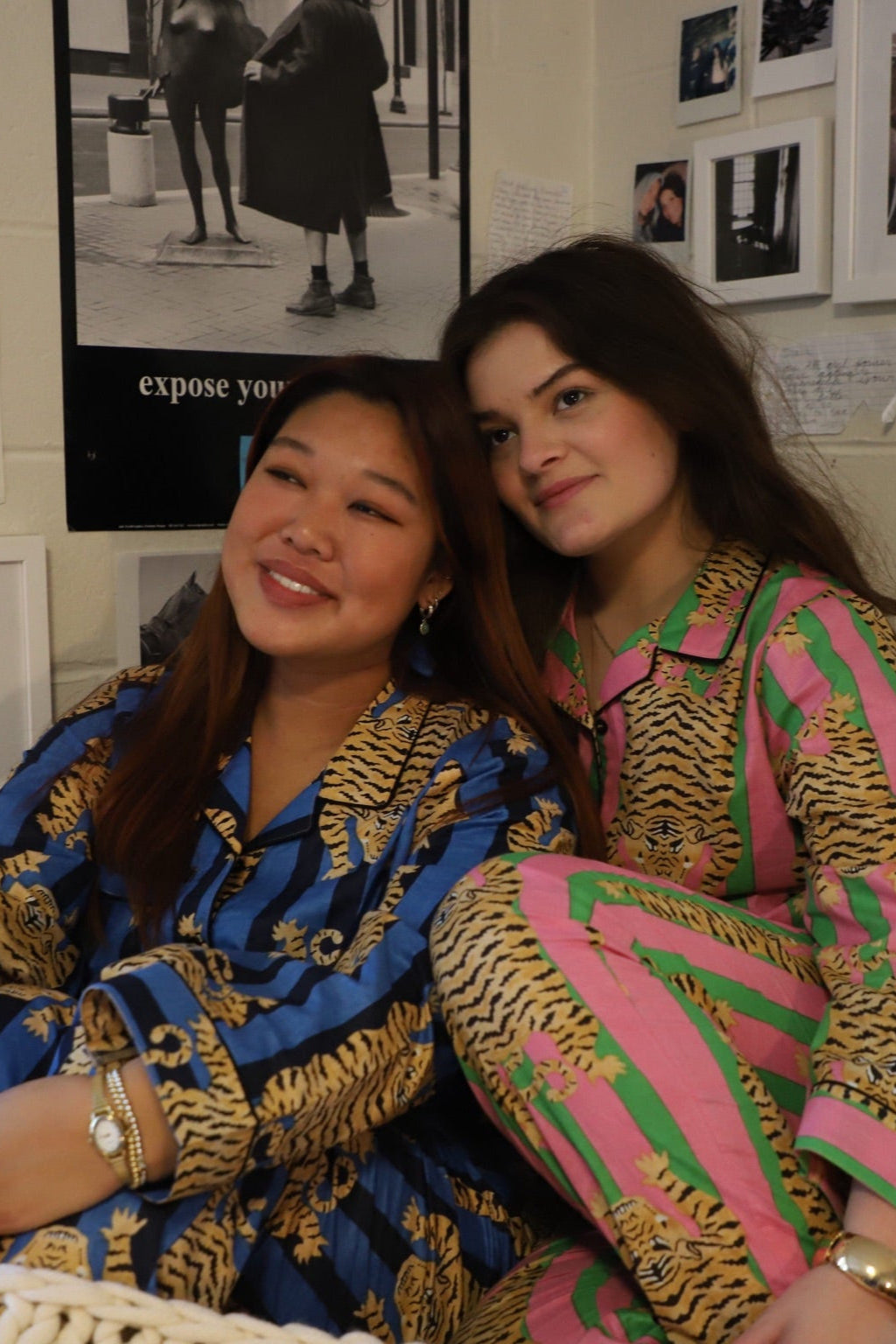 This soft cotton pajama set features a playful tiger print, combining comfort and charm for a perfect night’s sleep. It comes with a matching gift bag, making it an ideal present for yourself or a loved one.