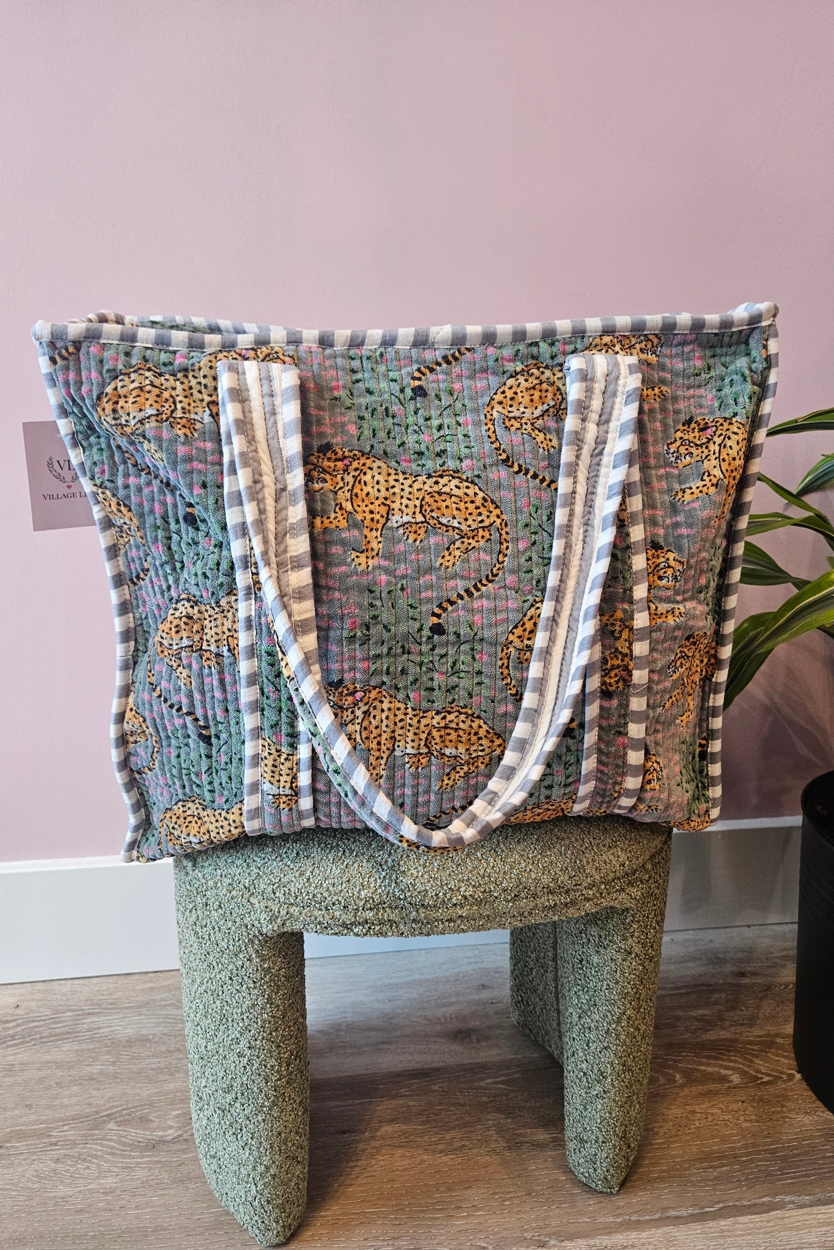 Velvet Tote Bag - Gray Cheetah